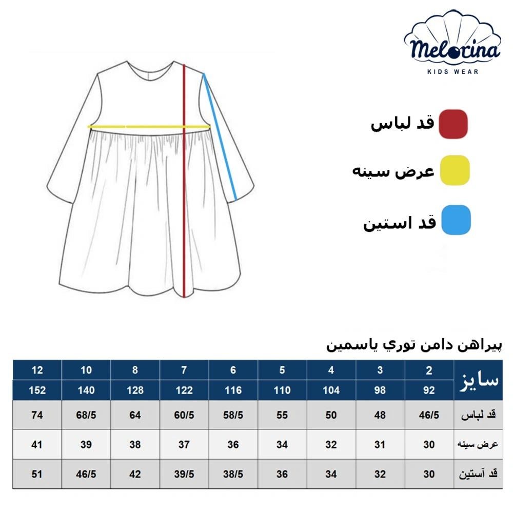 - پیراهن دخترانه ملورینا (Melorina) کد 9155 با طراحی ظریف و پارچه باکیفیت، انتخابی زیبا و راحت برای دختران خوشسلیقه است.