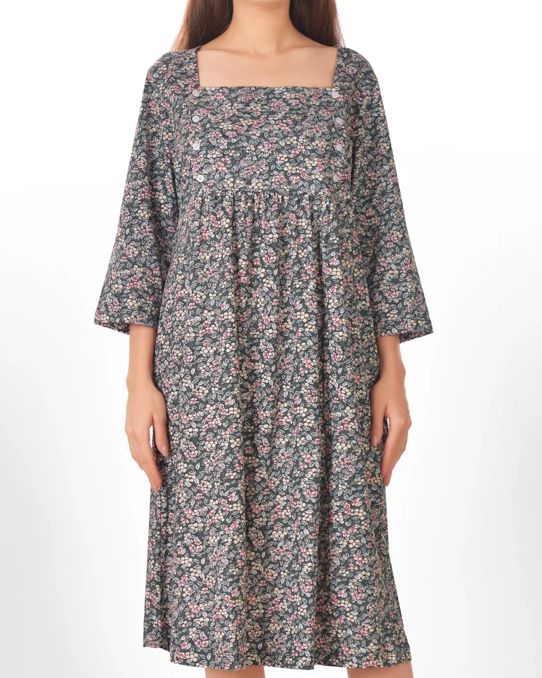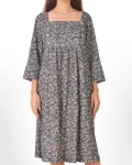 - پارچه این لباس از ۱۰۰٪ نخ پنبه طبیعی تهیه شده و با طرح گلهای ریز و زیبا، جلوهای لطیف و زنانه به آن بخشیده است.