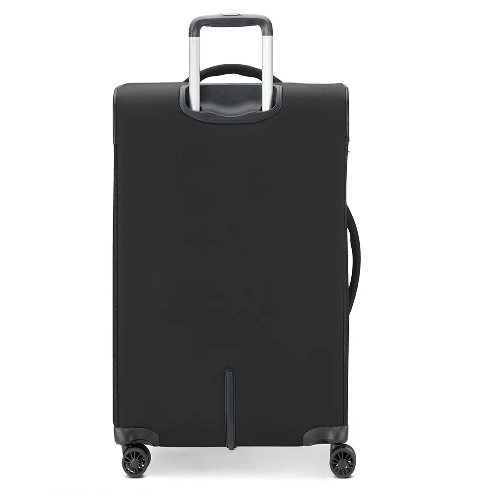 - این چمدان بزرگ از پلیاستر (Polyester) بادوام و سبک ساخته شده و با بدنه نرم (Soft Body) خود، ضمن استحکام بالا، انعطافپذیری لازم را برای سفرهای طولانی فراهم میکند.