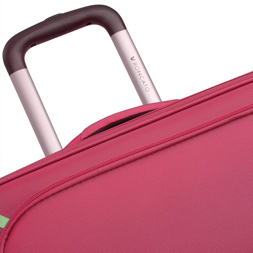 - چمدان رونکاتو Roncato مدل تواین سایز متوسط دارای چهار چرخ دوبل روان و دسته ترولی مستحکم است که حمل آن را بسیار راحت میسازد.