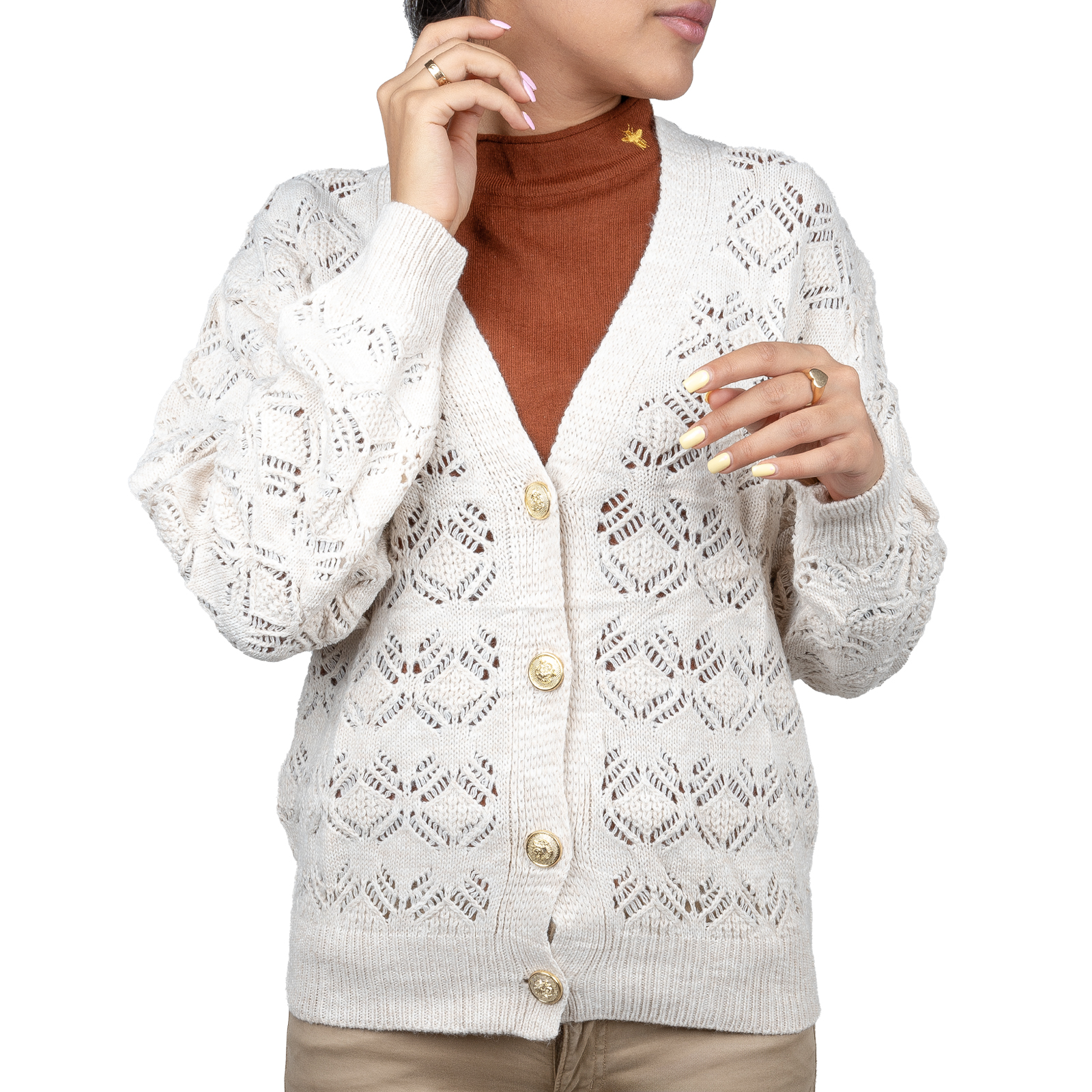 - ژاكت قلاب بافی دكمه دار فلاویا