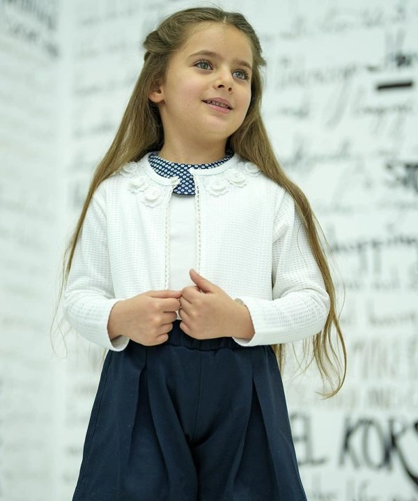 - کاردیگان دخترانه ملورینا بهراحتی با پیراهن، شلوار جین یا دامن ست میشود و استایلی شیک و کودکانه را برای دختران ایجاد میکند.