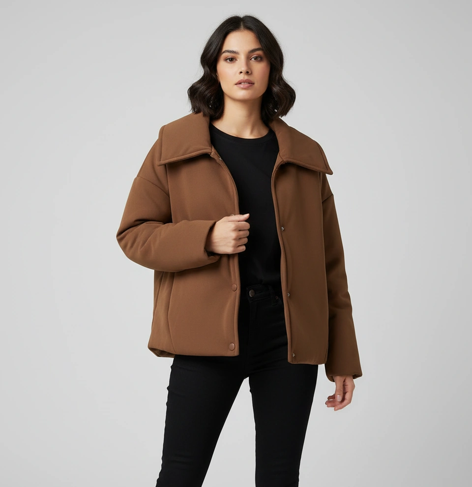• نحوه بسته‌شدن کاپشن به‌صورت دکمه‌ای طراحی شده که ظاهر کلاسیک و مرتب به آن می‌بخشد و برای استایل‌های کژوال، روزمره و حتی نیمه‌رسمی انتخابی مناسب است.