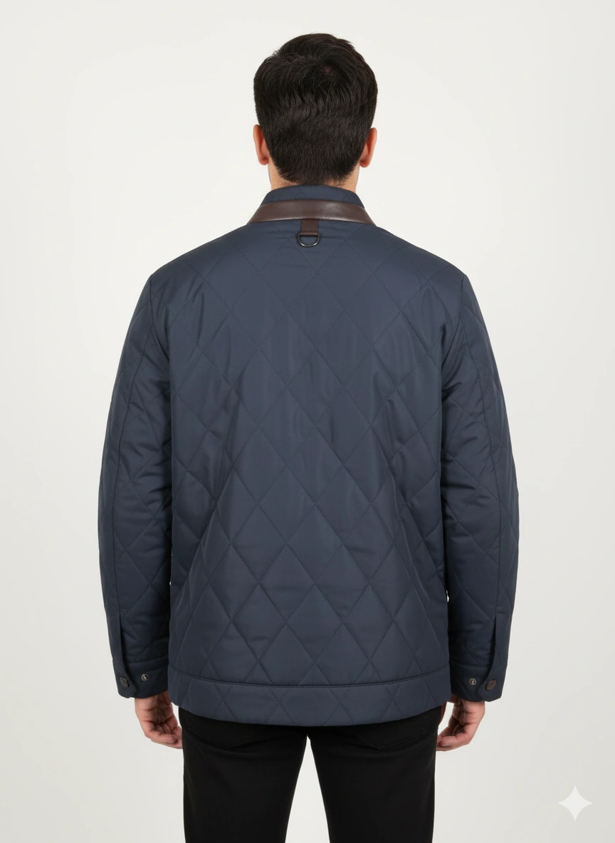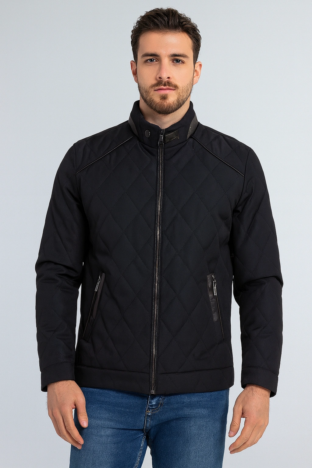 - طراحی این کاپشن با یقه ایستاده زیپدار و تکهدوزی ، ظاهری مردانه، جسور و جذاب به آن داده است. سگک تزئینی یقه جلوهای خاص و متفاوت به کاپشن میبخشد.