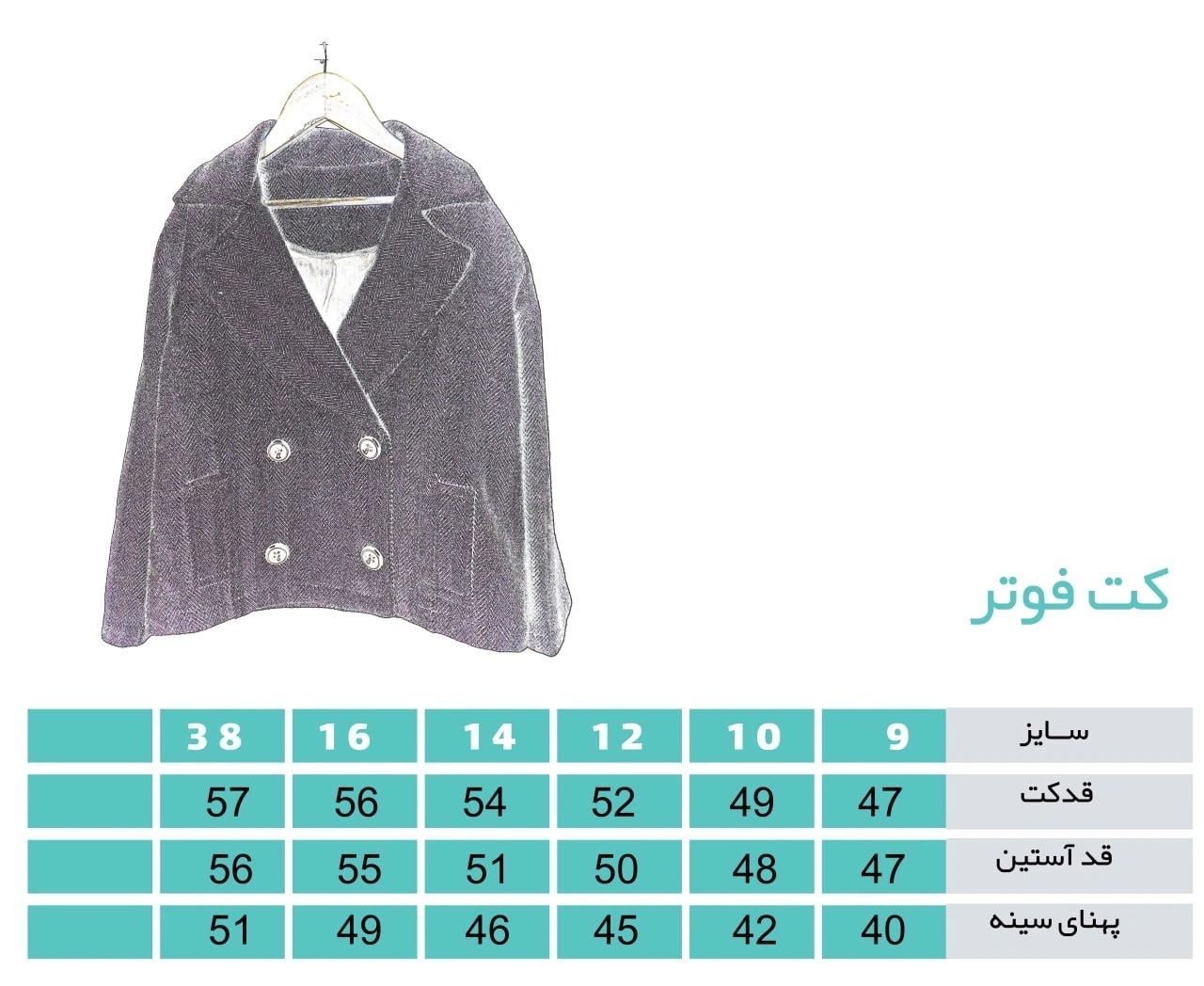 - این کت از جنس فوتر تهیه شده و با طراحی خاص یقه انگلیسی دوبل، جلوهای کلاسیک و مجلسی دارد.