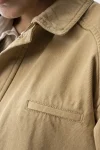 • مدل کت دارای یقه برگرد، آستین رگلان و زیپ در قسمت پیش لباس است که پوشیدن آن را آسان و ظاهر آن را اسپرت‌تر می‌کند.