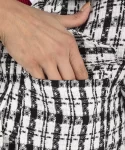 - قد مدل 165 سانتی متر، وزن 52 کیلوگرم و سایز M پوشیده است.