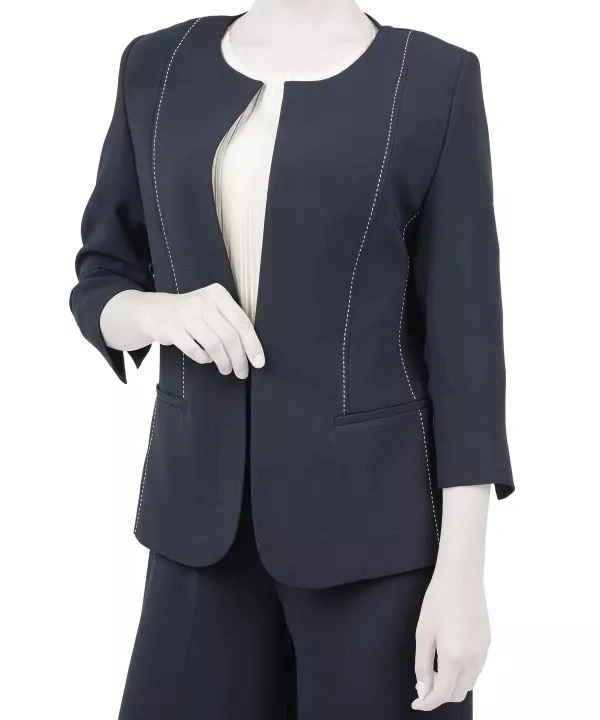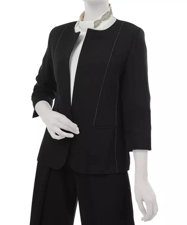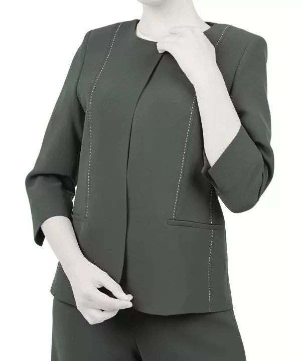 • این کت با یقه گرد و آستین بلند، ظاهر مینیمال و امروزی دارد و به‌راحتی با شومیز، شلوار پارچه‌ای یا حتی شلوار جین ست می‌شود.