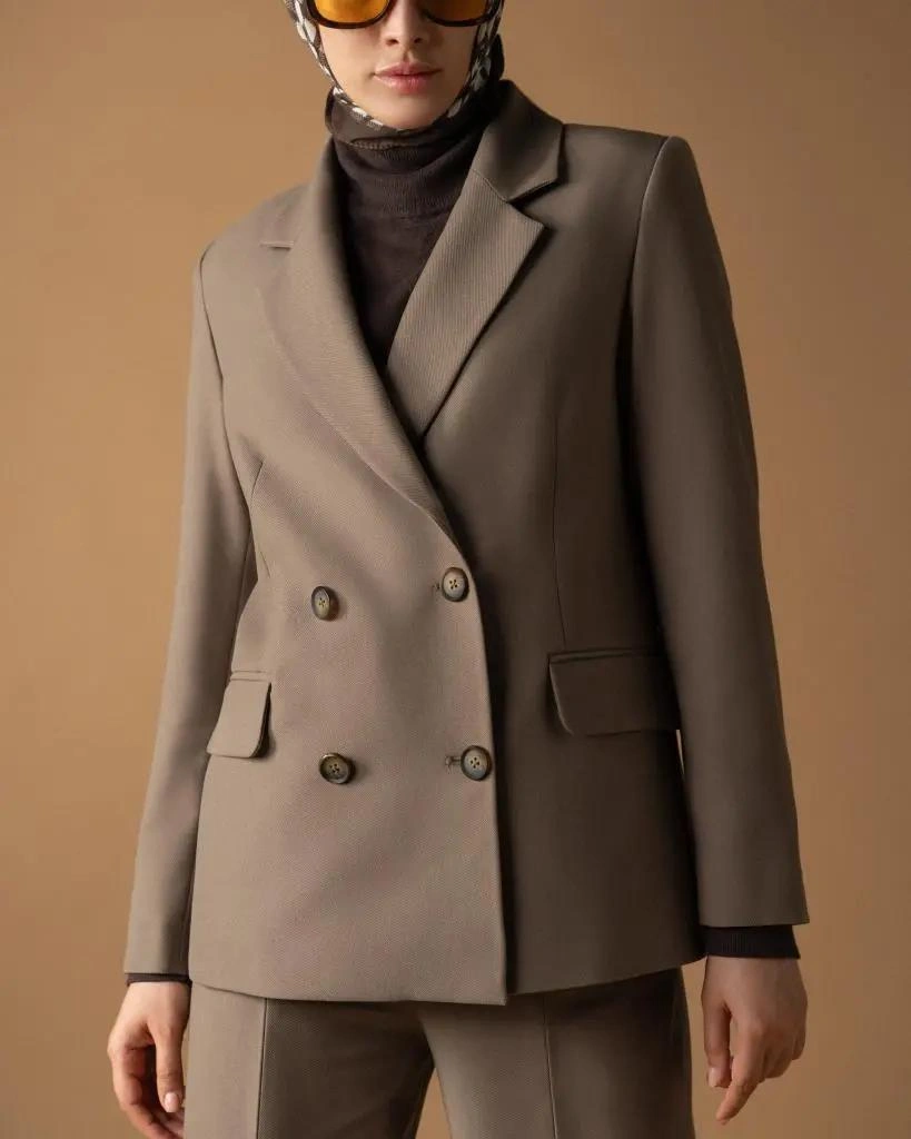 • پارچه کرپ به دلیل سبکی، لطافت و ایستایی مناسب، باعث می‌شود کت روی بدن فرم زیبایی داشته باشد و در طول روز ظاهر خود را حفظ کند.
