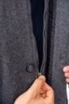 - یقه شکاری کلاسیک، جلوهای منظم و تمیز به لباس میدهد و طراحی سادهی دکمهها، ظاهر کت را متعادل و خوشفرم نشان میدهد.