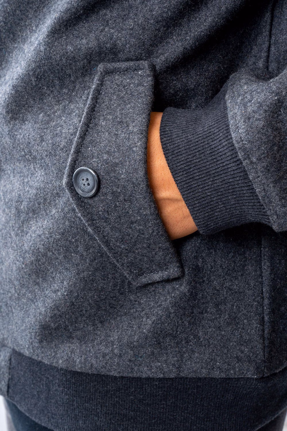 - پارچه فوتر استفادهشده حس گرما و استحکام مناسبی دارد و در عین حال ایستایی کت را حفظ میکند.