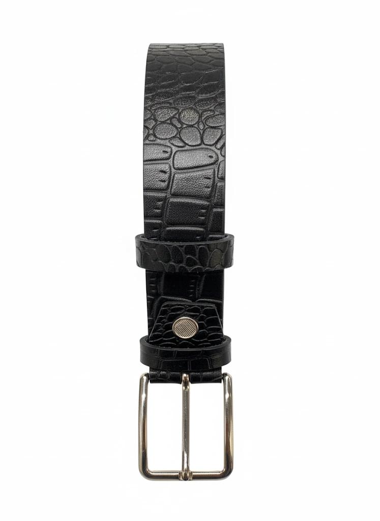 - طرح کورکودیل (Crocodile) روی چرم، جلوهای خاص و لوکس به این مدل داده و سگک میخی فلزی مقاوم آن ضمن استحکام بالا، حس کلاسیک و مردانهای به استایل شما میبخشد.