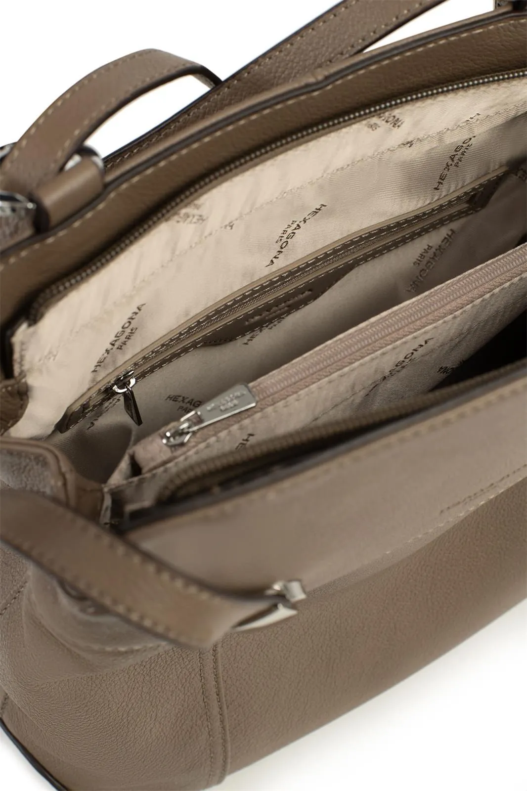 کیف زنانه هگزاگونا Hexagona کد 462107 از چرم گاوی طبیعی با بافت دانهدار (Grained Cowhide Leather) ساخته شده است. این نوع چرم علاوه بر لطافت، در برابر خط و خش و رطوبت مقاوم است و با گذشت زمان، ظاهری زیباتر و نرمتر پیدا میکند. کیف علاوه بر کیفیت بالا، ساختاری محکم و خوشفرم دارد که باعث میشود در استفاده روزانه، فرم ظاهری خود را به خوبی حفظ کند.