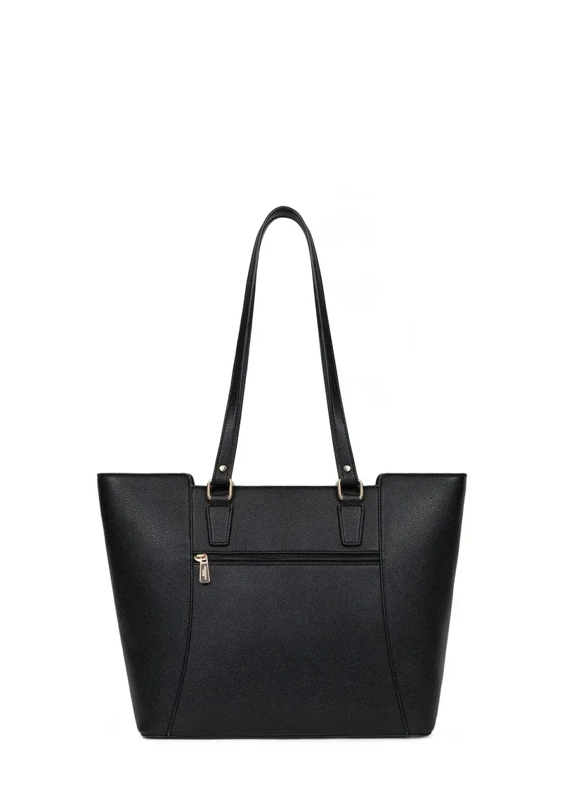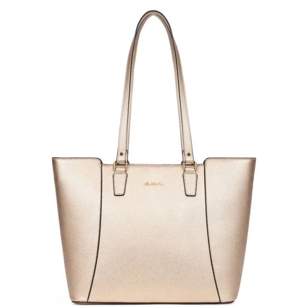 این کیف زنانه هگزاگونا Hexagona کد 5620067 از نوع کیف دو دستی با چاپ بافتدار مصنوعی (Printed Grain Synthetic) بوده و فرم کلاسیک و ساختار جمعوجور آن، جلوهای شیک و زنانه به ظاهر شما میبخشد. ابعاد کیف ۴۳ × ۳۳ × ۱۳ سانتیمتر و وزن آن ۰.۶۲ کیلوگرم است، که فضای کافی برای نگهداری وسایل ضروری روزانه مانند کیف پول، موبایل، مدارک، لوازم آرایشی و حتی فایلهای A4 فراهم میکند. دو دسته غیرقابل تنظیم و ثابت با طول ۶۷ سانتیمتر، حمل آسان کیف زنانه هگزاگونا Hexagona کد 5620067 روی شانه یا دستی را امکانپذیر میسازد.