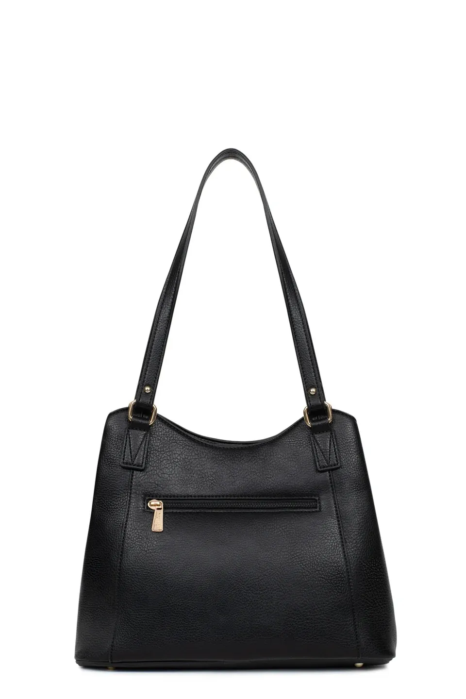 این کیف زنانه هگزاگونا Hexagona با ابعاد ۳۲ × ۲۵ × ۱۲ سانتیمتر و وزن سبک ۰.۵ کیلوگرم، ترکیبی عالی از فضا، راحتی و ظرافت است. رنگ متنوع، خطوط نرم و جزئیات طلایی براق روی بدنه، ظاهر کیف را بسیار ظریف و مدرن کرده است. طراحی آن به گونهای است که برای موقعیتهای مختلف — از استفاده روزمره گرفته تا مهمانی یا محل کار — کاملاً مناسب است. این کیف دارای دو دسته ثابت و غیرقابل تنظیم با طول ۶۰ سانتیمتر است که بهراحتی روی شانه یا در دست قرار میگیرد و حس استایل زنانهی فرانسوی را تداعی میکند.