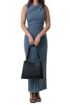 بدنه کیف از چرم مصنوعی دانهدار (Grained Synthetic Leather) ساخته شده است؛ جنسی که علاوه بر مقاومت و دوام بالا، لمس دلپذیری دارد و بهراحتی تمیز میشود. آستر داخلی نیز از جنس الیاف مصنوعی با کیفیت بالا است که در برابر سایش و استفاده روزمره مقاوم است. در طراحی این کیف از اتصالات طلایی براق (Shiny Gold Finishes) استفاده شده که ظاهری لوکس و زنانه به آن بخشیده است.