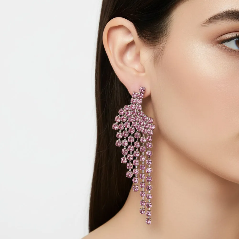 طول مناسب گوشواره باعث میشود هنگام حرکت، انعکاس نور کریستالها جلوهای چشمگیر ایجاد کند و تمرکز بصری را به سمت صورت هدایت نماید.