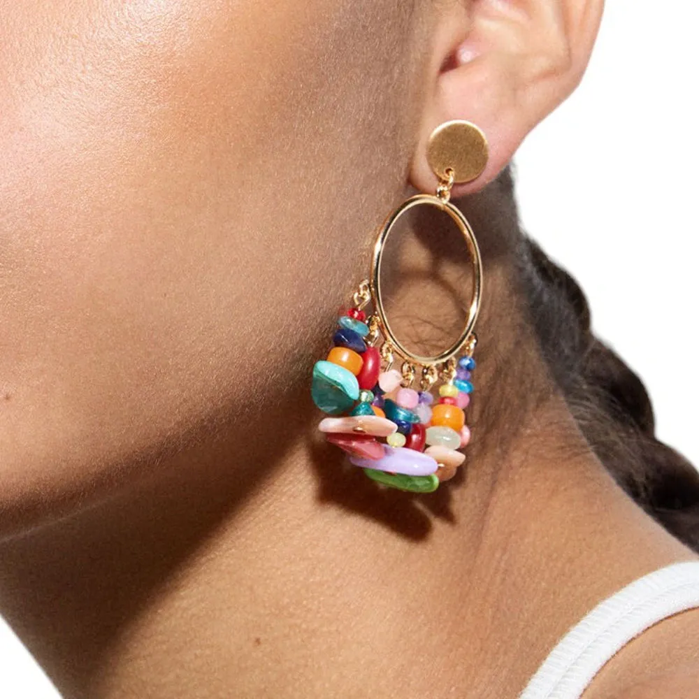 این گوشواره زنانه پارفوآ Parfois مدل 207042 از زیرمجموعه Dangle Earrings طراحی شده و با آویزهای صدفی رنگارنگ، حرکت و پویایی زیبایی به استایل می‌بخشد. ترکیب رنگ‌های شاد و روشن در کنار فرم آویز، حس سرزندگی و انرژی تابستان را به‌خوبی منتقل می‌کند. پنل SUNSET JUNCTION بیانگر الهام از غروب‌های گرم و فضای ساحلی است و رنگ Bright Multicolor جلوه‌ای خاص، هنری و ترندی ایجاد می‌کند.