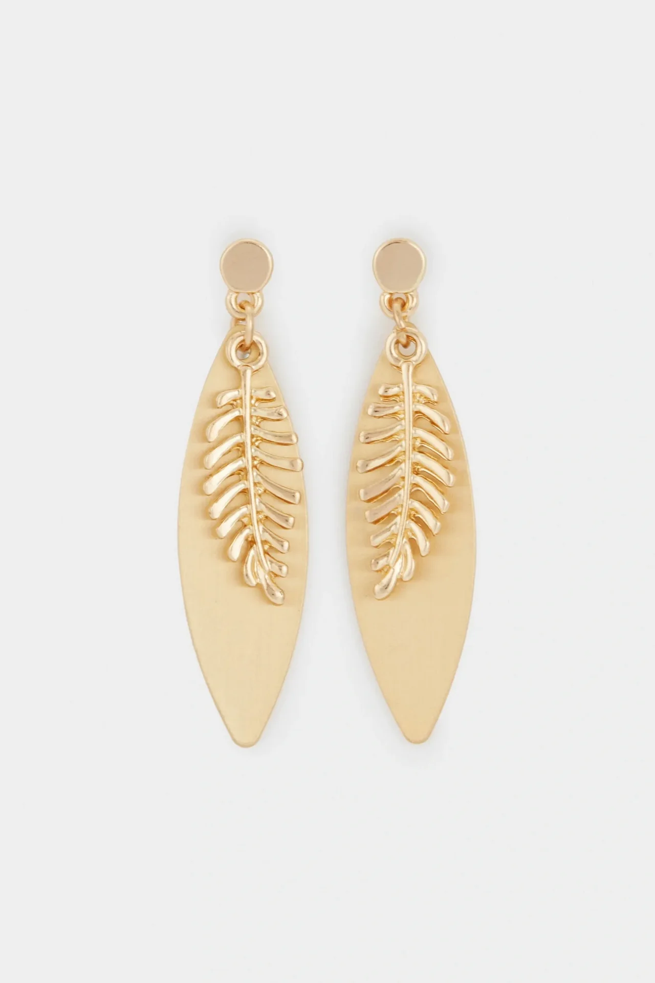 این گوشواره زنانه در دسته Dangle Earrings (آویز) قرار دارد و طراحی برگ به رنگ طلایی، حس ظرافت و جذابیت را ایجاد میکند. رنگ طلایی باعث میشود این گوشواره با انواع لباسها و زیورآلات دیگر هماهنگ شود و جلوهای کلاسیک و در عین حال مدرن داشته باشد.