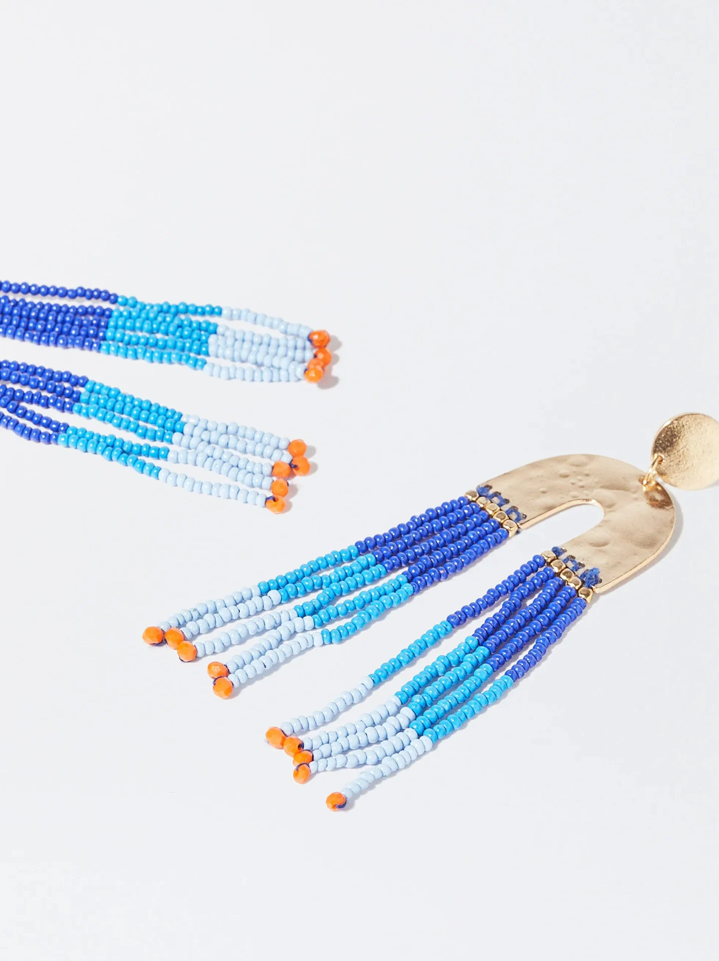 - گوشواره زنانه پارفوآ مدل 210303 با ساختار دنگل (آویزان) و طراحی پلهای، از مهرههای براق شیشهای و الیاف پلیاستری ساخته شده و جلوهای چشمنواز از طیف رنگی آبی تیره و دریایی ارائه میدهد.